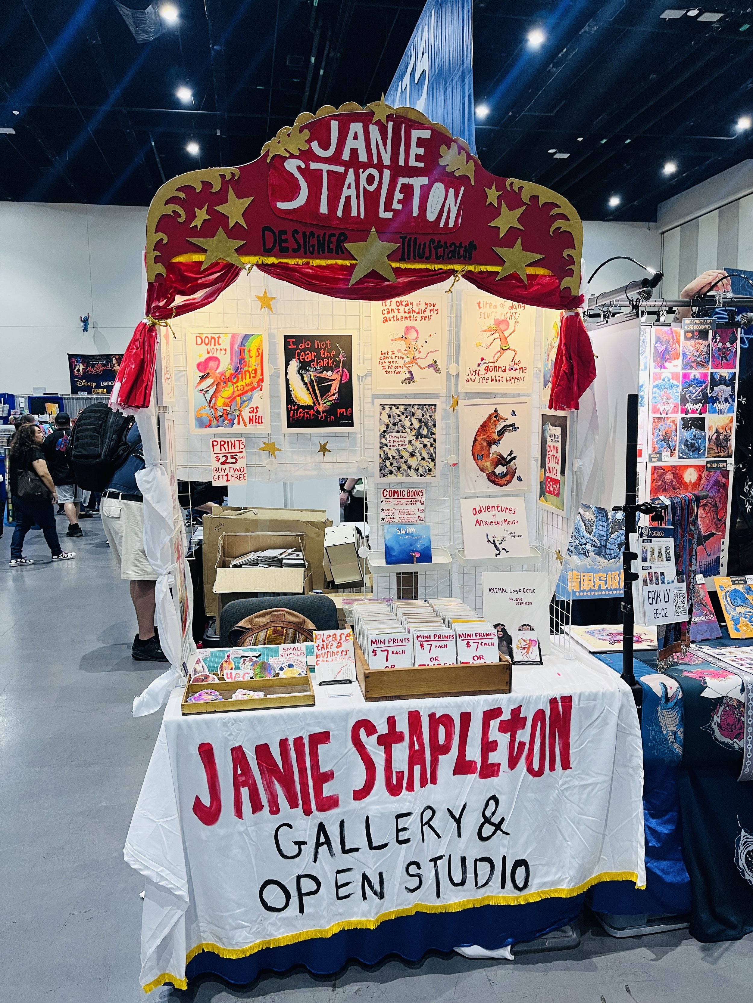 Every event is different and I focus on making my booth compliant with display policy, but I always create a gallery and open-studio with lots of handmade flair.