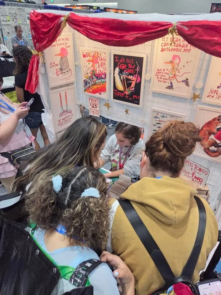 Iβm a professional illustrator with extensive Artist Alley and art fair experience, including SDCC, Wondercon, and Renegade Craft. My booth combines a strong retail presence with live, hand-drawn work. I try to do more than just sell my work, I want to create a memorable experience for people whenever I set up my table. I do this through my art itself, and by creating an open-studio/gallery experience. I also offer a limited number of pet portrait commissions, and give away hand-drawn business cards throughout the weekend.